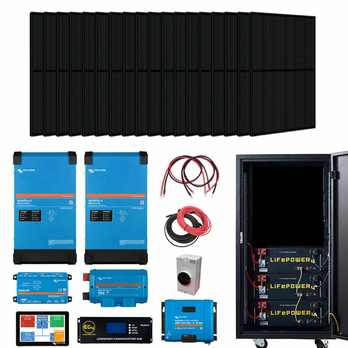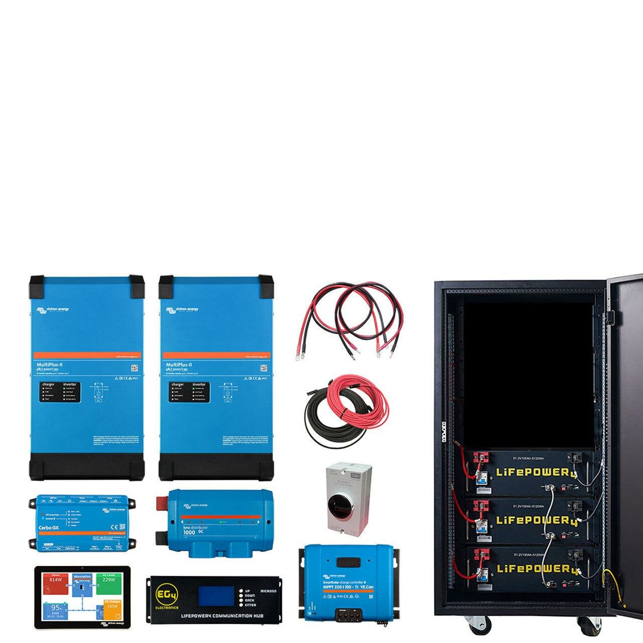 EG4 Complete Off-Grid Solar Kit 4.8kW | 120/240V Output / 48VDC [15.36kWh EG4 Lithium Powerwall] 48VDC + 5,460 Watts of Solar PV | [KIT-V0000] - 3 x EG4 LifePower4 [15.36kWh] - 5 Year Warranty / 12 x Hyperion 400W Bifacial Solar Panel (Black) - 4800W is backordered and will ship as soon as it is back in stock.