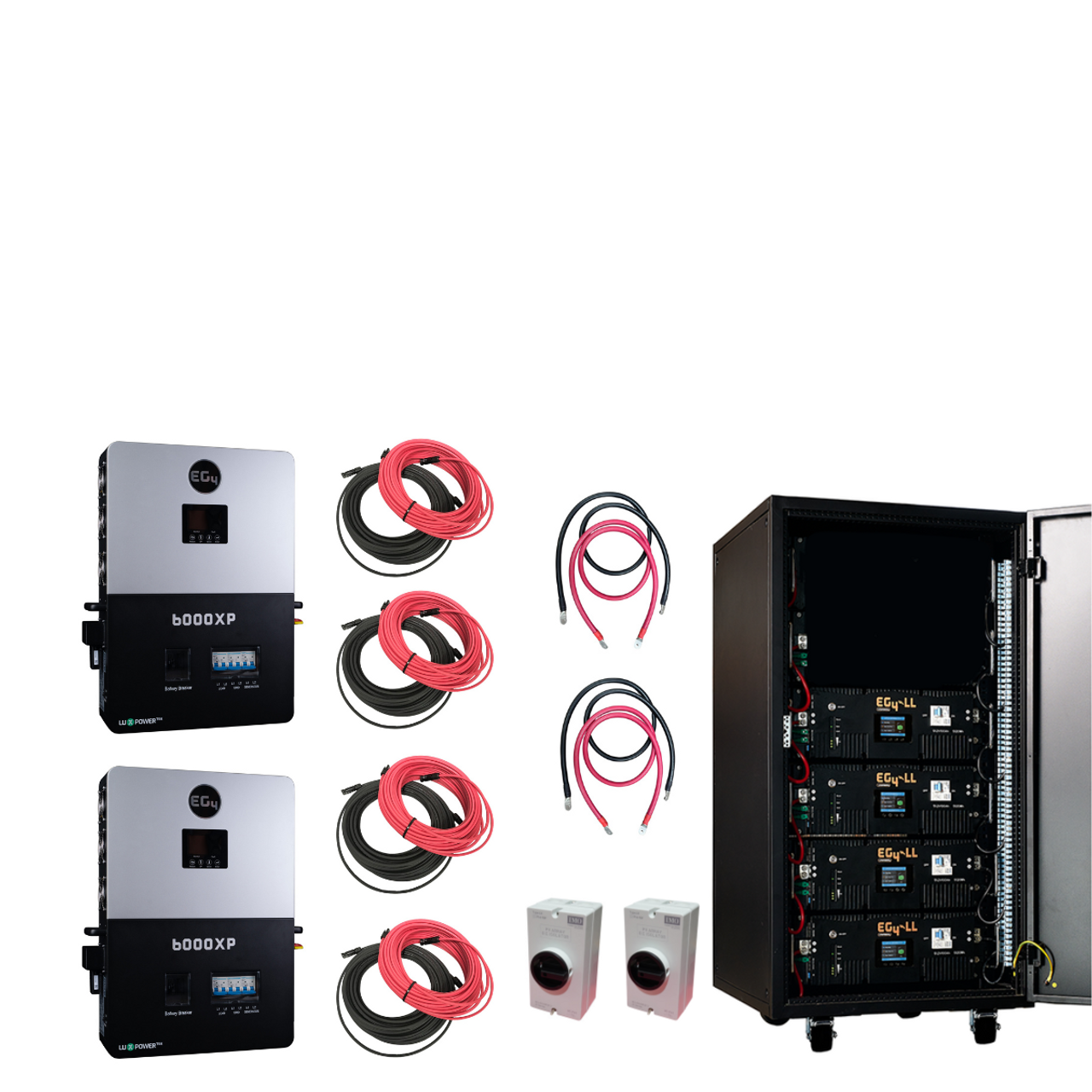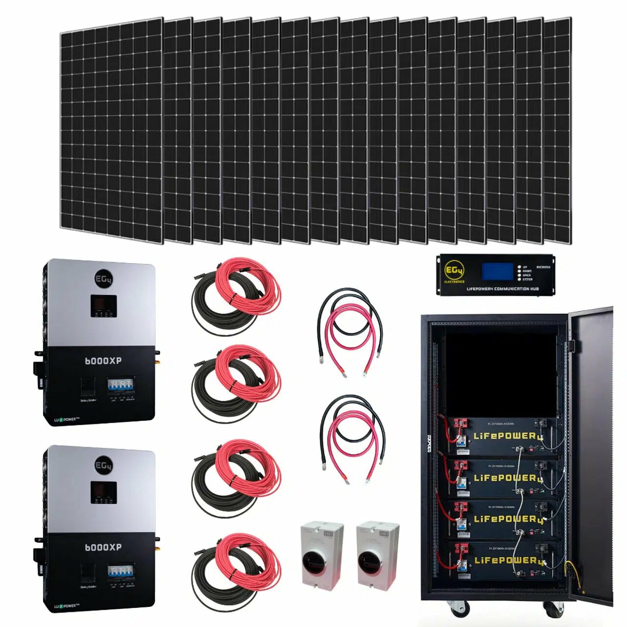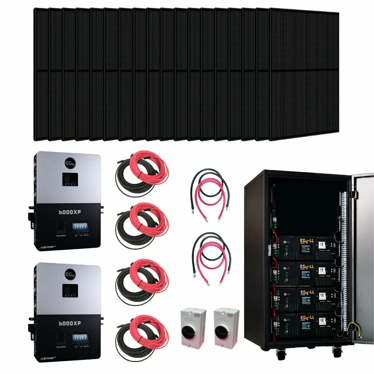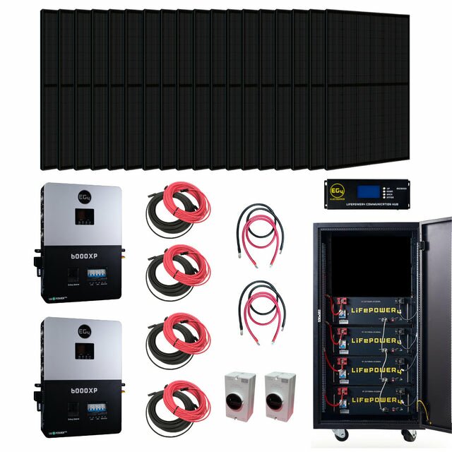 EG4 Complete Off-Grid Solar Kit KIT-E0009 | EG4 6000XP 12000W Output | 48V 120/240V Split Phase + 12800 Watts of Solar - 28 x Solarever 410W Half-Cell Mono PERC Solar Panel / 4 x EG4-LL-S Lithium Battery | 48V 100AH | Server Rack Battery / 4 x 50ft 10AWG Copper PV Wire | Black and Red is backordered and will ship as soon as it is back in stock.